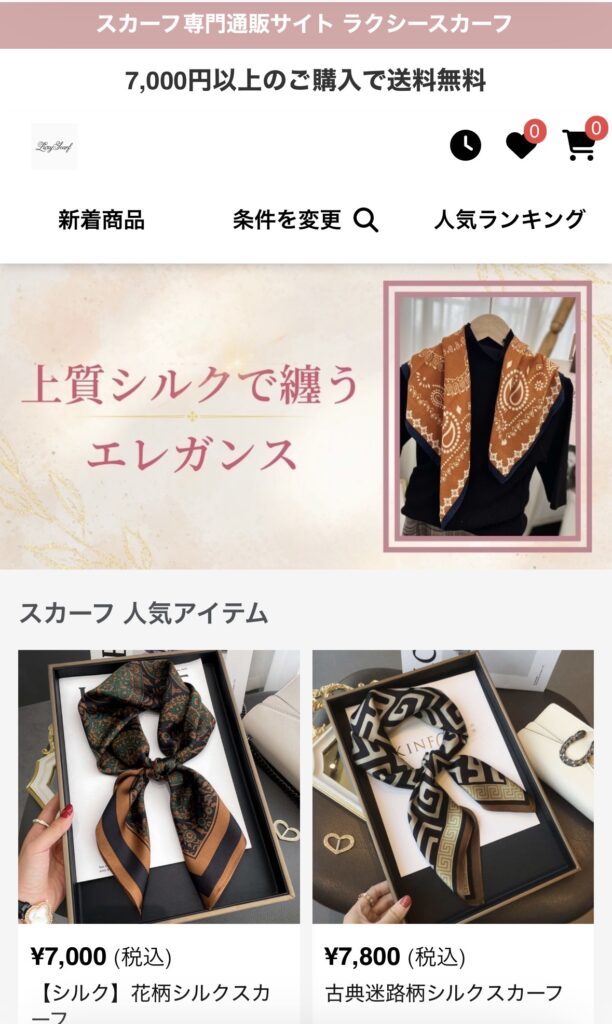 ECサイトスカーフ専門通販サイト「ラクシースカーフ」を運営しています。